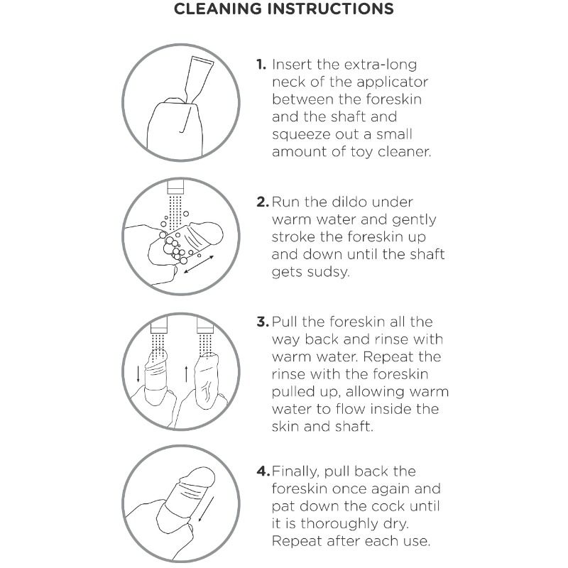 Lelun huolellinen hoito on tärkeää sekä hygienian että pitkäikäisyyden kannalta, älä laiskottele tämän kanssa. Pese dildo jokaisen käyttökerran jälkeen huolellisesti lämpimällä vedellä ja miedolla saippualla tai erikoispuhdistusaineella, joka on tarkoitettu seksileluille. Kuivaa huolellisesti pehmeällä puhtaalla pyyhkeellä ja anna kuivua kokonaan ennen säilytystä – kostea lelu voi homehtua tai hajota. Säilytä omassa pussukassaan tai laatikossaan erillään muista leluista – jotkut materiaalit voivat reagoida keskenään ja vahingoittaa toisiaan. Älä jätä suoraan auringonvaloon äläkä säilytä äärimmäisissä lämpötiloissa kellarissa tai autossa. Hyvin ja huolellisesti hoidettu penis kestää vuosia ja vuosia uskollisessa palveluksessasi.